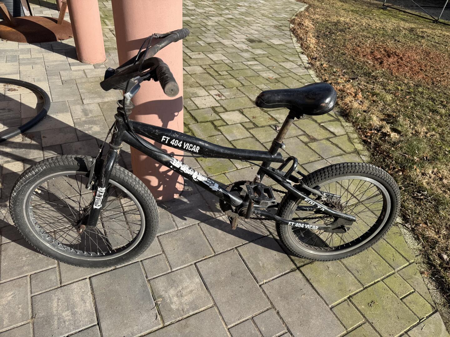 Rower 20? z wyczynowego został przerobiony na zwykły, zostały dodane hamulce z tyłu.