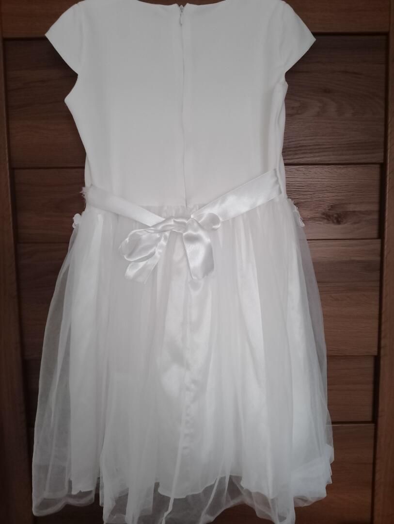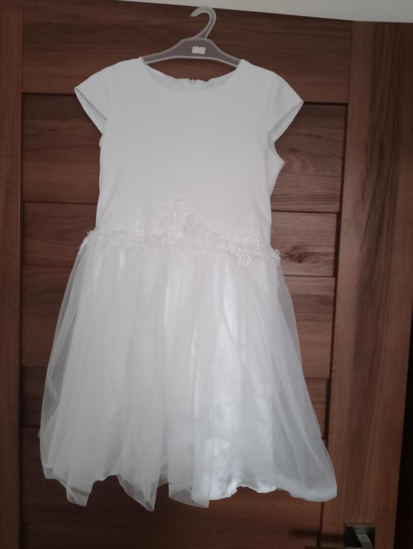 Sprzedam elegancką sukienkę dziewczęcą plus bolerko raz nałożoną na wesele w rozmiarze 7 - 9, ewentualnie 10 lat;