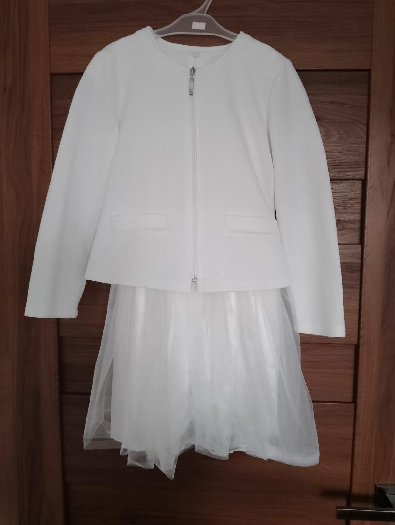 Elegancka sukienka z bolerkiem raz nałożona stan bardzo dobry w przedziale wiekowym 7-9 ewentualnie 10 lat.