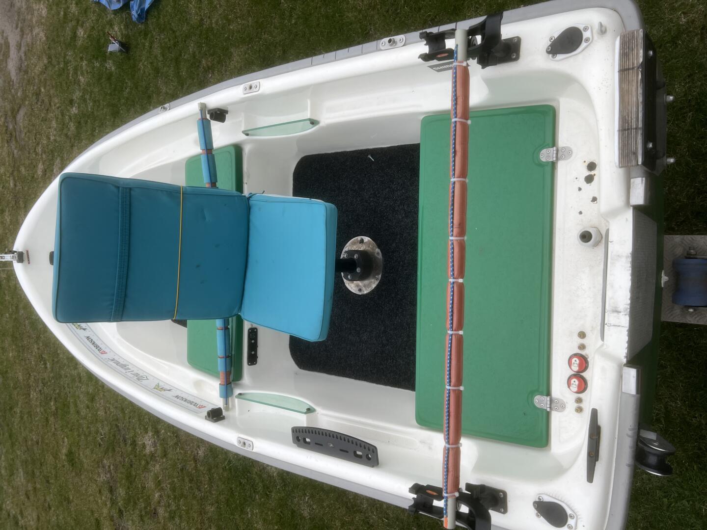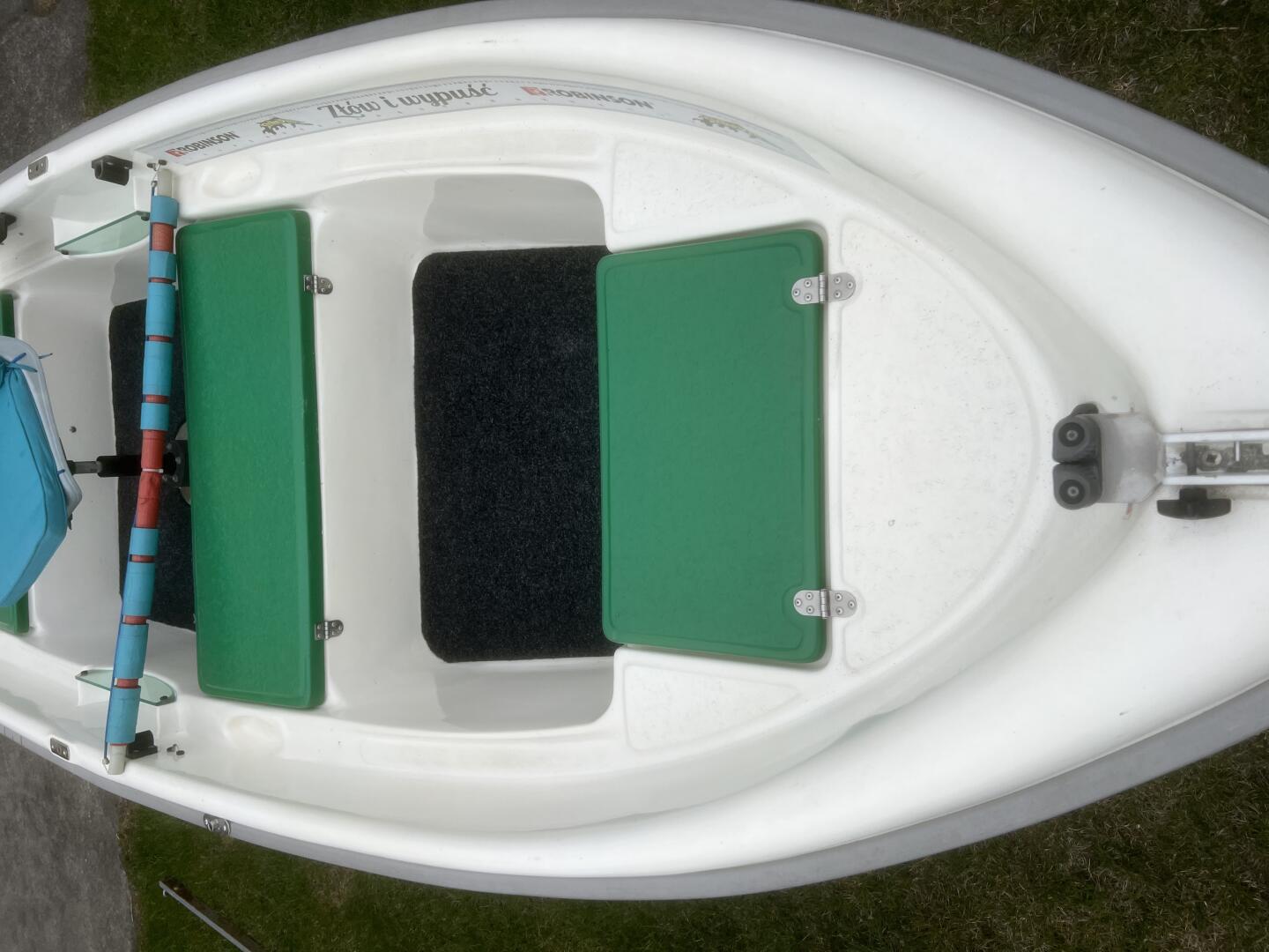 Łódka dwupłaszczowa wyposażona w 3 bakisty, instalacja elektryczna, uchwyty trolingowe, gniazda trolingowe, rolka kotwiczna, fotel regulacją wysokości,
